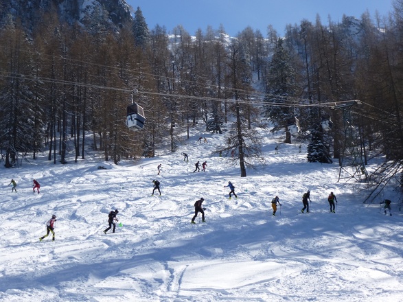 Start für alle Klassen östlich der Mittelstation der Jennerbahn auf ca. 1165 m > kurzes Pistenstück > Aufstieg im freien Gelände des Beckhangs rechts der Piste > Pistenquerung > Aufstieg zum Spinnerkaser (Vogelhüttenalm, 1410 m) und durch den Kleinen Spinnergraben im oberen Teil linkshaltend zum Jennergrat (1680 m, 1. Wechselzone)