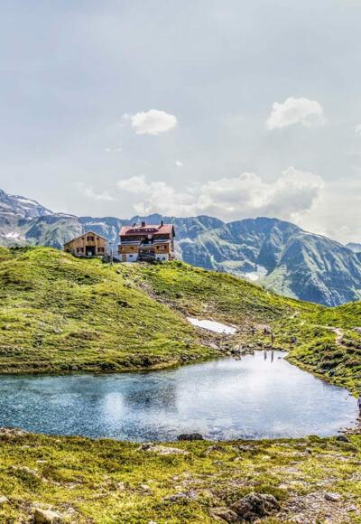 Badehose nicht vergessen! Welche Hütte auf über 2000 Metern bietet schon einen Badesee?