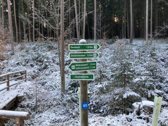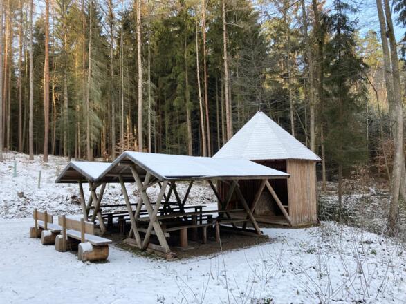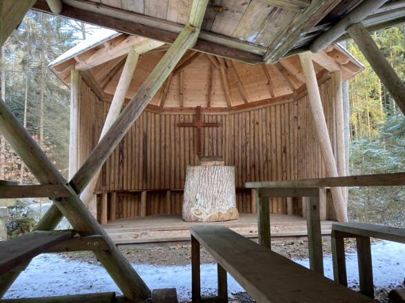 Das „Kastenbrünnla“ ist eine kleine Kapelle im Kastenholz. Der Eichenaltar entstand aus einem rund 200 Jahre alten Eichenstamm und hat ein Gewicht von mehr als 600 Kilogramm und im Dachgebälk hängen zwei Glocken. Ende der 90er Jahre wurde das „Kastenbrünnla“ neu mit Sandsteinquadern eingefasst und aufgebaut. 2002 wurde am Brunnen die Schutzhütte aus Holz erbaut. Die Kapelle zieren eine Wachsbibel und ein Schaukasten, der die Geschichte des Kirchenwaldes aufzeigt.