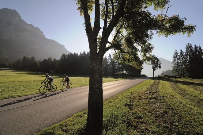 Unter Radsportlern ist das Tannheimer Tal schon länger bekannt, denn 2001 zog der Tross der Österreich Radrundfahrt durchs Tal. 2005 kamen die Radprofis der Bayernrundfahrt bei der Auftaktetappe auf Tiroler Boden und wurden mit der Bergwertung Tannheimer Tal und der Bergwertung Jungholz belohnt. Und sogar Profis fielen die landschaftlichen Reize des "wohl schönsten Hochtal Europas" auf. Sattgrüne Wiesen, der Haldensee und eine schöne Bergkulisse begleiteten die Radprofis auf ihren Wettkampfkilometern. Und somit hat sich das Tannheimer Tal auch als ideale Region für gezieltes Training oder ausgedehnte Touren angepriesen. "Das Tannheimer Tal ist ein idealer Startpunkt für lange Rennradtouren in die umliegenden Regionen wie zum Beispiel an den Bodensee oder an den Arlberg", so Michael Keller, Geschäftsführer des Tourismusverbandes Tannheimer Tal und ehemaliger Mountainbike- Bundestrainer Österreichs. Radsportler finden im Tannheimer Tal neben dem idealen Ausgangspunkt auch eine breite Palette von Unterkünften. Vom 5 Sterne Haus bis zum Privatzimmer können Sie Ihe Unterkunft wählen. Nach einer schönen Ausfahrt die Seele baumeln lassen und neue Kräfte tanken. - Das Tannheimer Tal