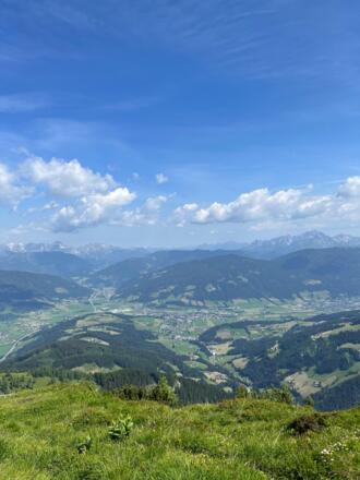 Vorbei bei den Lackenalmen (nach ca. 45 Minuten erreicht) führt diese Wanderung auf den Gipfel des Lackenkogel. Oben erwartet dich ein herrliches Panorama.