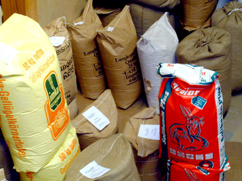 Verkauf im Lagerhaus für Lebensmittel, alle gängigen Futtermittel für Nutz- und Haustiere, Heimtiernahrung, landwirtschaftliche Artikel und Tierzuchtgeräte, Werkzeug, Farben, Haushaltswaren.