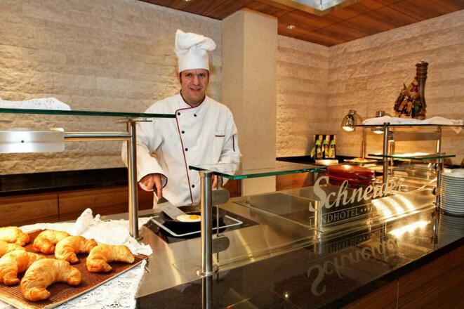 Deshalb findet man auf unserer Speisekarte einen gestandenen Schweinebraten ebenso, wie einen Pfifferlings-Latte Macchiato mit Holunderblütenschaum und "Schneider's Kartoffel-Quark-Girgerl".