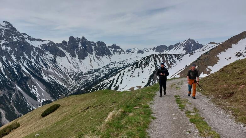 Bei der Bergbahn "Neunerköpfle" in Tannheim starten wir unsere Wanderung in Richtung Vilsalpsee. Diesen umrunden wir mit einem Abstecher zu dem "Bergaicht-Wasserfall". Nach dreiviertel Runde um den See biegen wir rechts ab Richtung Obere Traualpe und Landsbergerhütte. Zügig geht es nun bergauf, ehe wir bald den Wald hinteruns lassen und die Obere Traualpe mit dem Traualpsee erreichen. Nun ist schon die Landsberger Hütte zu sehen. In einem letzten kurzen Steilen Aufschwung erreichen wir diese.
