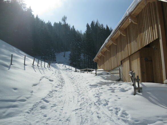 Die Abfahrt führt zurück zur Largozalm und von dort je nach Verhältnissen auf einem der Forstwege zurück zur Krepperhütte.