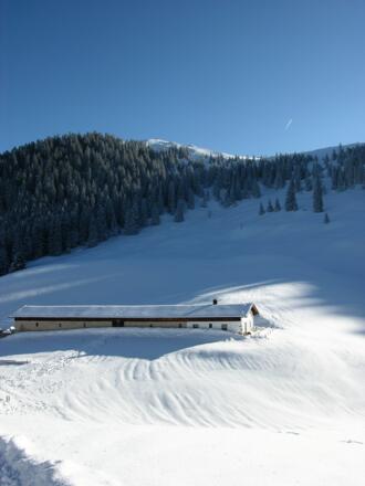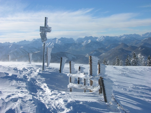 Einkehr: Lenggrieser Hütte (DAV Lenggries, 50 L. bew., Durchgehend geöffnet, Dienstag Ruhetag, auch im Winter ist die Hütte mit Tourenskiern, Schneeschuhen und Schlitten auf dem präparierten Winterweg zu erreichen, Tel. +49 8042 5633096)