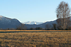 "Ja wo ist man nun?! in Oberbayern oder in Ostfriesland, oder gar in beidem?" Das wird sich so mancher Wanderer fragen, wenn er den Loisach-Rundweg bei Großweil auswählt. Zwar wandert man hier nicht am Meer, sondern am Fluss Loisach entlang, auf den Wiesen hinter dem Deich weiden nicht etwas friesische Schafe, sondern bayerische Kühe, und auch im Hintergrund tun sich nicht etwa Blicke auf den weitern Horizont, sondern auf die nahen Hausberge Jochberg, Herzogstand und Heimgarten auf, dennoch kann man sich diesem Eindruck nicht verwehren, wenn man vom Wanderparkplatz an der Loisach-Brücke in Großweil aus am Fluss entlang nach Schlehdorf marschiert.