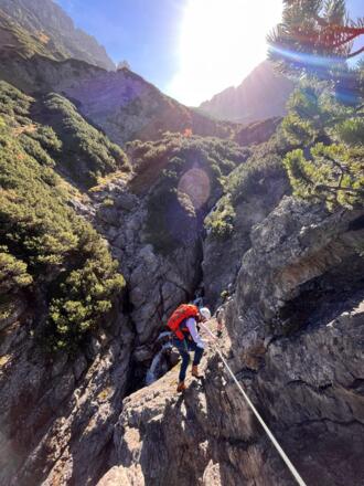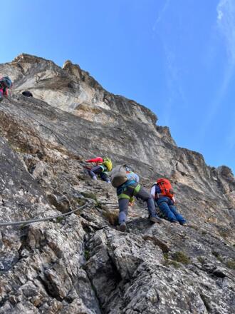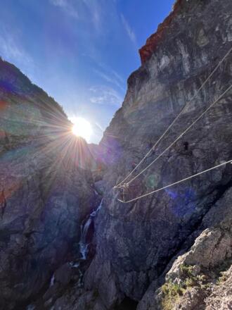 Der Klettersteig zur Hanauer Hütte was Teil der Maier Sport Erlebniscamp 2023. Er bietet für unterschiedliche Erfahrungsgrade unterschiedliche Kletterwege.