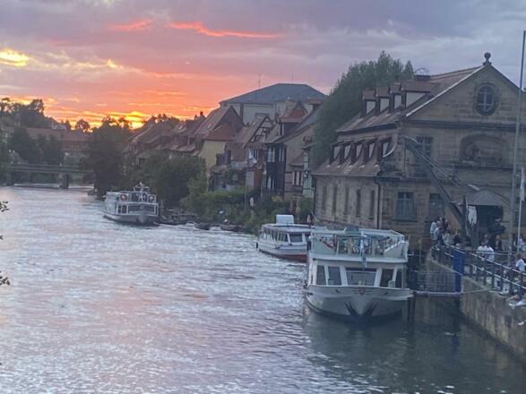 Wir fahren vom Biergenuß hin zum Frankenwein. Bis zur Mündung in den Rhein sind es noch ca. 200 Höhenmeter. Die heutige Etappe fällt um 23 m. Wer die Möglichkeit hat sollte die Fahrtrichtung nach der Windrichtung wählen. In den offenen Mainauen kann es sonst sehr anstrengend werden. Ein Muß ist der Besuch vom Weltkulturerbe Bamberg mit dem Alten Rathaus, das leider an der Regnitz liegt.