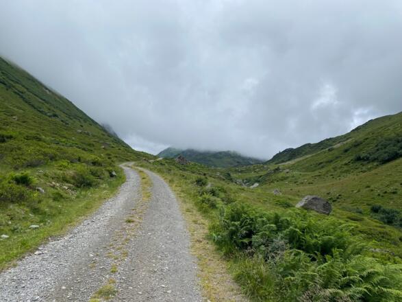 Erst am Radweg auf Asphalt, dann Schotter. Im Verwalltal erst breiter Forstweg, dann auf einem Pfad. Auf den letzten 100hm zur Hütte wird der Weg zum Pfad und es ist teilweise zum Schieben.