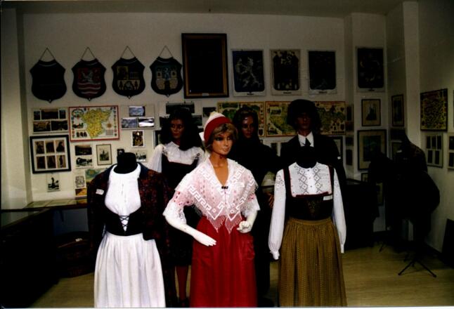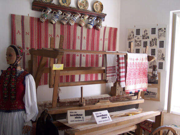 Wertvolle Handarbeiten, Trachten, Bilder, Geräte und Kulturgut aus den ehemaligen Siedlungsgebieten der Donauschwaben, Siebenbürger Sachsen, Sudetendeutschen, Buchenlanddeutschen (Bukowina) und Beskidendeutschen sind in diesem geschichtlich aufgebauten Museum ausgestellt. Die zur jeweiligen Volksgruppe gehörigen Trachten werden auf lebensgroßen Puppen präsentiert und darüber hinaus finden sich im Bestand des Museums Landkarten, Ansichten, Dokumente, alte Münzen und Banknoten aus den ehemaligen Heimatstädten der Siedler.