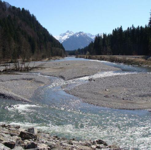 Entlang der Tour führt der Weg an mehreren Stellen direkt an die Iller. Sie entspringt nur wenige Kilometer flussaufwärts in den Allgäuer Hochalpen und mündet 147 Kilometer später bei Ulm in die Donau. Dass sie bei Fischen noch ein wilder Gebirgsfluss ist, sieht man ihr auf den ersten Blick an. Das Wasser fließt in mehreren, unterschiedlich breiten Armen durch ein weites Schotterbett. Bei Starkregen schwillt der Fluss innerhalb kürzester Zeit an und verlagert dann mit viel Energie große Mengen an Flusssteinen. Aber ebenso schnell geht das Wasser wieder zurück und legt ein frisch umgestaltetes Schotterbett frei. Um den Fluss zu zähmen wurden schon früh auf beiden Seiten Dämme aufgeschüttet. Sie werden heute als beliebte Radwege genutzt, engen den Fluss aber stark ein. Ohne den Einfluss des Menschen würden weite Teile des Talbodens von einer verschlungen fließenden Iller in Anspruch genommen. Wie dies aussehen würde, kann man an den wenigen, heute noch vorhandenen, nahezu unverbauten Alpenflüssen sehen, wie zum Beispiel im benachbarten Naturpark „Tiroler Lech“, südlich von Reutte.