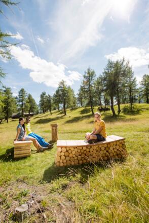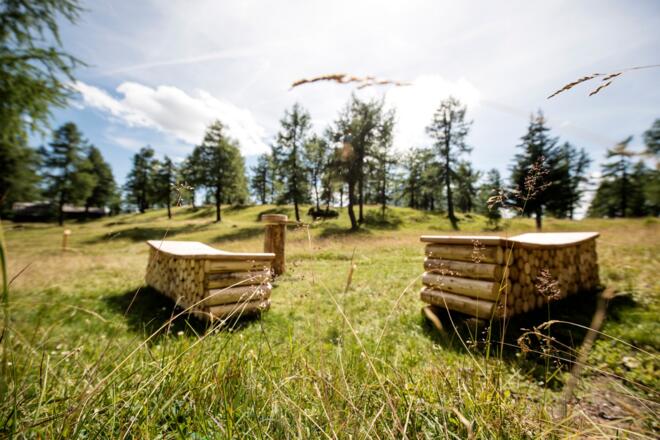 Sie spenden Schatten, lassen aber noch genug Licht hindurch für den Unterwuchs. Die Lärchen auf den Eulenwiesen ermöglichen eine geschützte Blumenvielfalt (Küchenschelle, blauer Enzian, Arnika, …) und geben Bürstlingsrasen und Zwergsträuchern Platz. Entstanden sind diese „Larchbergmahder“ durch Brandrodung. Die Bauern brauchten aufgrund der vielen Überschwemmungen im Talboden neue Weideflächen und suchten diese auf knapp 1.700 Metern Seehöhe. Während Fichten und Kiefern dabei verbrannten, loderten die Lärchen nur äußerlich und trieben im nächsten Frühjahr wieder aus. Erhalten bleiben solche Naturschauplätze nur durch aufwendige Pflege und Bewirtschaftung der Bauern. Einmal im Jahr werden die Eulenwiesen daher mit Handmäher und Sense gemäht.