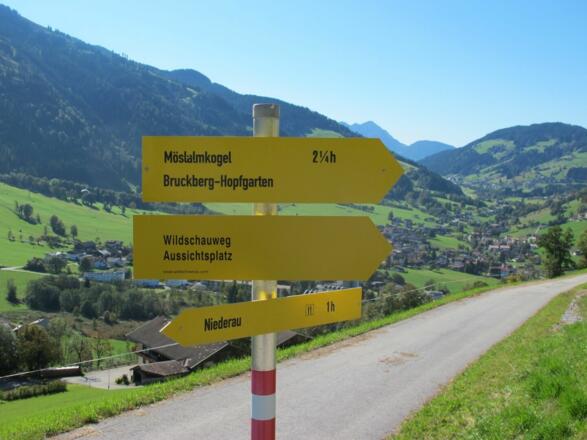 Vom Ende in Niederau beim Klausenhof der Straße hoch folgend zur Jausenstation Foisching. Dort kann man auch Hirsche in einem Wildgehege beobachten.