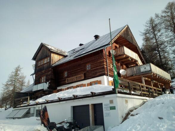 Die erste Etappe der Schneeschuhdurchquerung der Nockberge umfasst nur den Aufstieg zur Neuen Bonner Hütte und ist daher gut an einem Nachmittag zu bewältigen.