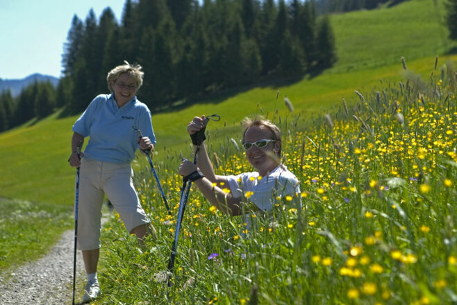 Entlang an Wiesen, über grüne Almen, an glitzernden Bergseen... Walken und Laufen im Tannheimer Tal ist nicht nur das beste Training für den Körper, sondern vor allem Balsam für die Seele. Die Ausgangspunkte für alle Bewegungshungrigen. liegen in den sechs Orten Tannheim, Grän- Haldensee, Nesselwängle- Haller, Zöblen, Schattwald und Jungholz. Von hier folgen die Spaziergänger, Nordic Walker und Läufer den Wegweisern. Sie sind leicht zu erkennen: Männchen mit den Stöcken. Zudem sind alle Strecken, ebenso wie Skipisten in die Kategorien schwarz, rot und blau eingeteilt. Eine optimale Kennzeichnung, die unter anderem dazu beitrug, dass sich das wohl schönste Hochtal Europas seit 2005 offiziell "Lauf- und Walkingkompetenzzenturm" nennen darf.