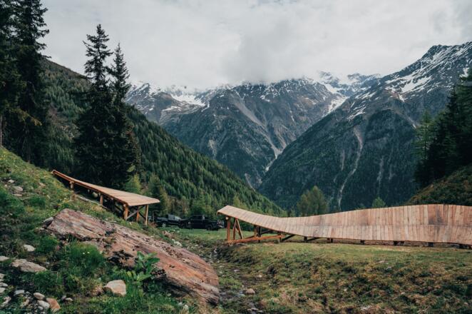 Einkehren kann man in der Panorama Alm in Grünwald oder an der Giggijoch Talstation. Da kann man auch in der Tunap Wash Station das Bike reinigen.