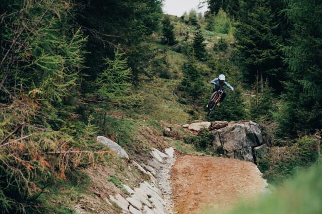 Zum Einstieg gelangt man über die GAHE LINE. Der Start liegt unterhalb der Obstlerhütte an der Rotkoglbahn. In Grünwald fädelt man dann wieder in die GAHE ein.
