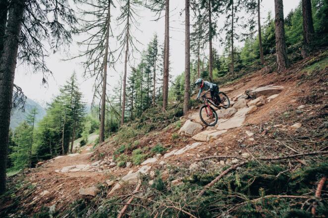 Doppelschwarz!! Die technisch super anspruchsvolle OLM VOLLE LINE führt über 1,5 km durch steiles Gelände – wild, luftig, technisch! Nur für Pros und sehr versierte Rider!