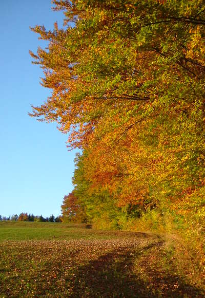 Auf Feldwegen und Nebensträßchen geht der südliche Teil des Geolehrpfads durchs Alpenvorland.