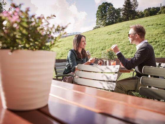 Uriges A-la-Carte-Restaurant mit herrlicher Terrasse im Hotel Astrid
