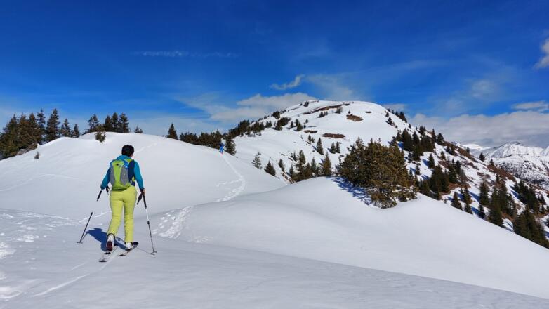 Gemütlich einer Forststraße entlang, dann über schöne Mähder auf einen aussichtsreichen Rücken gelangen wir unschwer zum Gipfel