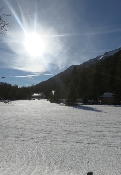 Parkplatz für einige Skitouren in Tweng. Etwa 20 Parkplätze