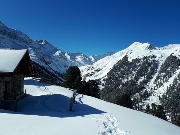 Auf dem Forstweg geht es zurück ins Fotschertal und über das Bergheim hinunter nach Sellrain.