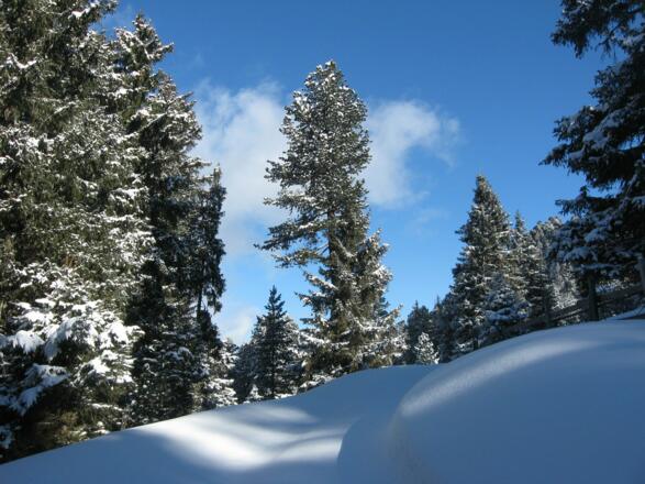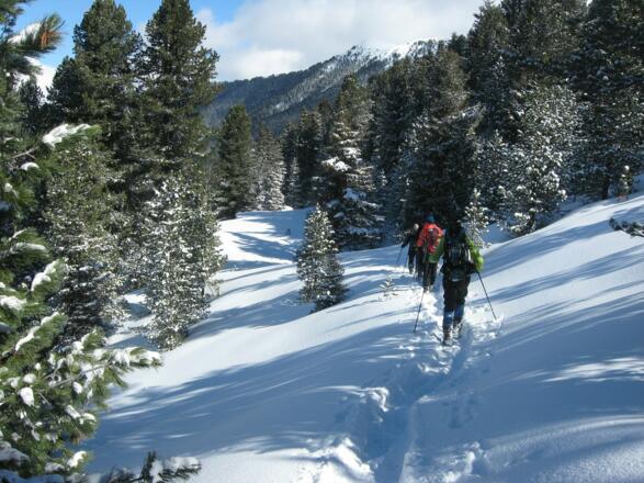 Schneeschuhwander durch die Zirbenwälder der Ostseite vom Fotschtal.
