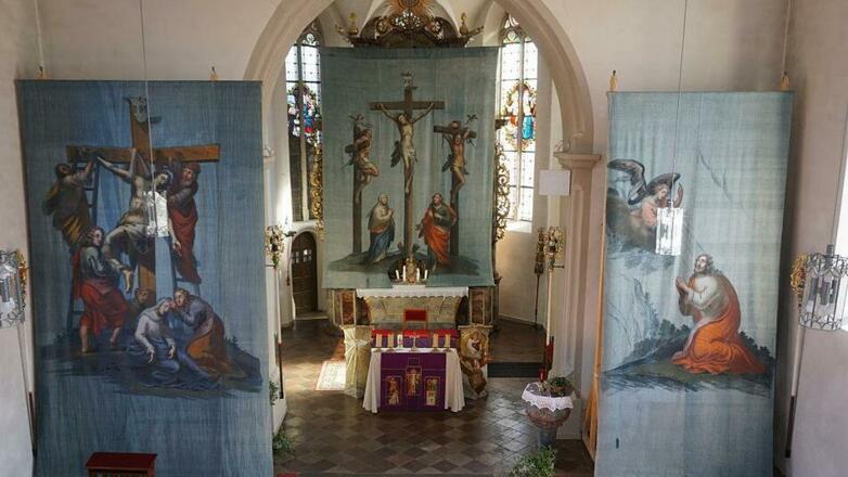Fastentücher in der Schönauer Kirche St. Laurentius Nach Aschermittwoch werden die Altäre in der Schönauer Kirche mit den drei Fastentüchern verhängt, die lange als verloren galten, und vor mehr als zehn Jahren durch Zufall auf dem Dachboden der Kirche wiederentdeckt wurden. Mit dem Verdecken der Altäre in der vorösterlichen Zeit soll auf den Glanz des Alltags verzichtet und an die Leidensgeschichte Jesu erinnert werden. Die über fünf Meter langen und etwa zwei Meter breiten Tücher mit den Darstellungen der Ölbergszene, der Kreuzigung und der Kreuzabnahme beindrucken jeden Kirchenbesucher. Die Tücher mussten jedoch fachgerecht restauriert werden, um sie wieder in der Kirche präsentieren zu können. Nach viel Überzeugungsarbeit der damaligen Kirchenpfleger haben die Gremien der Pfarrgemeinde dann die Restaurierung vergeben. Sie wurde in enger Zusammenarbeit mit dem Landesamt für Denkmalpflege und der Diözese geplant und ausgeführt. Dies war aber nur möglich durch die großzügige Spendenbereitschaft vieler Bürger und weiterer Zuschussgeber. Auch in diesem Jahr sind die Fastentücher täglich zwischen Aschermittwoch und Ostern zu bewundern.