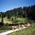Sie starten am Parkplatz der Grasgehrenhütte (Riedbergpass) Richtung Norden aufs Riedberger Horn. Ein breiter Weg führt Richtung Gipfel. Vorbei an Latschen, Fichten, und vor allem blühenden Wiesen (Alpenrosenhang), auf denen die Jungrinder grasen. Vom Gipfel gehen Sie südlich auf einem schmalen Wanderweg Richtung Parkplatz wieder bergab und genießen nochmals die tollen Ausblicke auf die Berg- und Blumenwelt.
