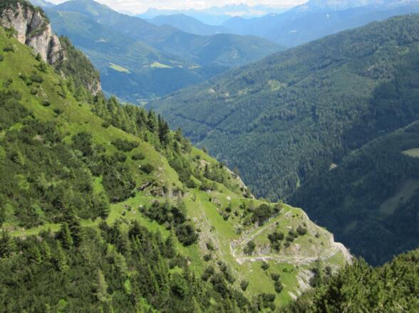 Im Pflerschtal treffen wir auf einen Radweg und folgen diesem kurz und zweigen dann rechts ab zum Weiler Ast. Dann folgen wir dem Weg, gehen unmittelbar über dem Eisbahnportal rechts weiter bis zu einem Hochseilgarten. Auf dem Talweg gehen wir neben dem Ferner Bach (rund 5 km) bis nach Innerpflersch (St. Anton), welches auf 1.246 m liegt. Wir beenden die heutige Etappe in der Kirche zum hl. Abt Anton. 1.881 wurde die Kirche in der heutigen neuromanischen Form neu errichtet.