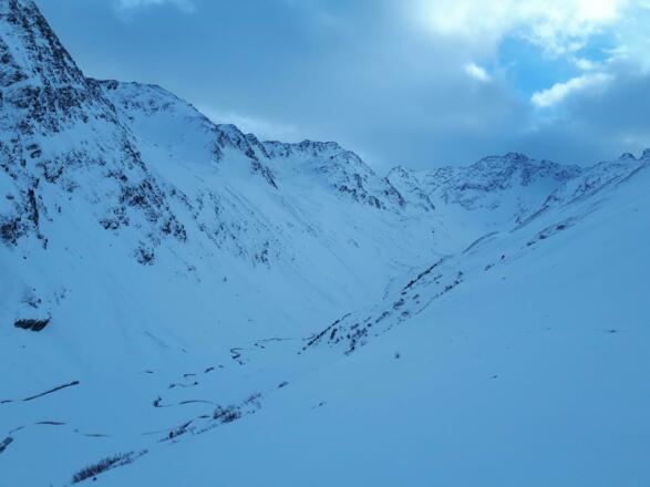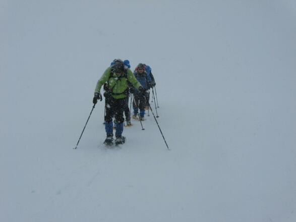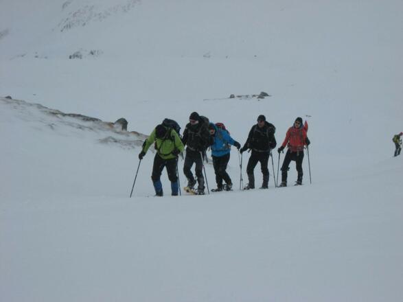 Lohnende und anspruchsvolle Tour mit Schneeschuh mit Start und Ende an der Potrsdamer Hütte.