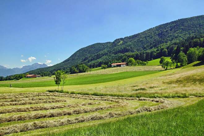 Diese Walking-Runde mit gut 7 km Länge führt Sie zunächst in Richtung Süden an der Bernauer Achen entlang und dann einen kleinen Anstieg hoch nach Rudersberg. Der Abstecher zum Wasserturm lohnt sich: Ein herrlicher Blick auf den Chiemsee und auf Bernau.