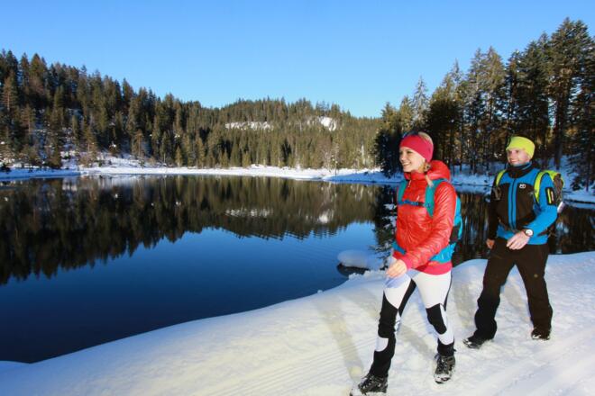 Aufatmen! Diese kurze, einfache Winterwanderung ermöglicht uns eine kleine Flucht aus dem Alltag. Schon nach wenigen Schritten sind wir weit weg von Straßen, Gebäuden und Pflichten. In aller Ruhe erleben wir die Welt der Moore rund um den wunderschönen Riedener See. Ein Lehrpfad beschreibt die Besonderheiten dieser einzigartigen Landschaft auf verständliche Weise. Viele seltene Pflanzen und Tiere leben in dem Wäldchen, dem Kalk-Quellmoor und im Gewässer, darunter auch die seltenste Kleinlibelle Mitteleuropas: Bileks Azurjungfer.
