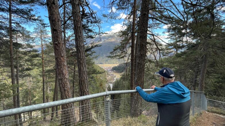 Der Parkplatz oberhalb der Pfarrkirche ist eine Kurzparkzone mit 180 min (geht sich also leicht aus). Hier beginnt die Wanderung und führt gut beschildert gleich auf breitem Weg in den Wald. Der Weg ist hier auch ein Skulpturenweg mit Werken heimischer Künstler. Dem Hang entlang geht es im Wald taleinwärts, eine Skipiste querend in Richtung Eingang der Klamm. Über Metallstiegen kurz absteigend wird nach 1 km der Niedere Übergang erreicht. Von der Brücke bestaunt man die steilen senkrechten Felswände inzwischen derer hier der Salvesenbach "ins Freie" kommt. Auf der anderen Seite ist eine große Geschiebesperre, die Tarrenz vor Vermurungen schützt und alljährlich ausgebaggert wird. Der Salvesenbach transportiert nämlich bei Gewitter riesige Menge an Geschiebe vom brüchigen Fels der Heiterwand. Jenseits vom Niederen Übergang steigt der inzwischen schmälere Weg gemächlich an. Bei einem Wasserschloss gehts links aufwärts und man nähert sich langsam hoch überm Bach dem Hohen Übergang. Immer wieder gibt es ein paar Ausblicke zum Tschirgant und ins Pitztal im Süden. Am Hohen Übergang (2,2 km) blickt man 40 m in die Tiefe und erlebt die Kräfte der Natur in eindrücklicher Weise. Über Stiegen gehts nun kurz steil bergauf und dann dem Hang entlang oberhalb der Schlucht zum Waldrücken oberhalb einer Siedlung. Bei einem Wegkreuz im Bereich der ersten Häuser führt links ein Steig abwärts zum Ausgangspunkt, welcher allerdings nicht beschildert ist. Gar nicht schlechter und vielleicht auch schöner ist der Spaziergang entlang der Straße zurück zum Ausgangspunkt.