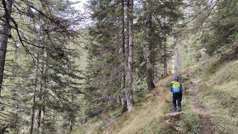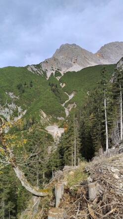 Nach kurzer Zeit erreicht man bereits eine Forststraße und kann direkt gegenüber wieder weiter nach unten steigen bis der Normalweg zur Steinalm erreicht wird. Diesem bis zum Parkplatz weiter folgen.