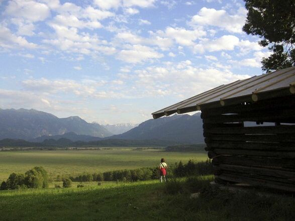 Kaum eine Tour um Murnau am Staffelsee bietet mehr Einblicke in eine intakte Natur als der bekannte und beliebte Moos-Rundweg. Ausgehend von der im 8. Jahrhundert erbauten Ramsach-Kirche – auch Ähndl – genannt führt die Wanderung zunächst entlang der Bäche Ramsach und Lindach, immer mit wechselnden Eindrücken von Moos und den nahen Bergen, um dann nach rechts auf einen Bohlensteig abzuzweigen. Mitten im Moos geben hier Informationstafeln nähere Einblicke in die Tier- und Pflanzenwelt. Weiter über den Murnauer Ortsteil Westried gelangt der Wanderer über einen schönen Höhenrücken mit tollen Ausblicken wiederum über das gesamte Moos und die Alpen zurück zum Ramsachkircherl, wo er die Kirche besichtigen und im Biergarten oder Gasthaus "Ähndl" einkehren kann.