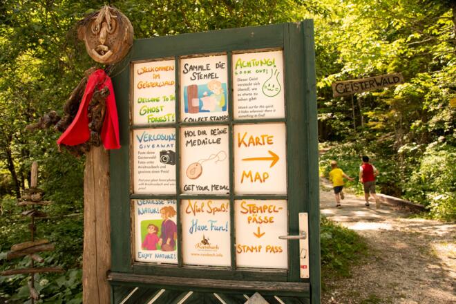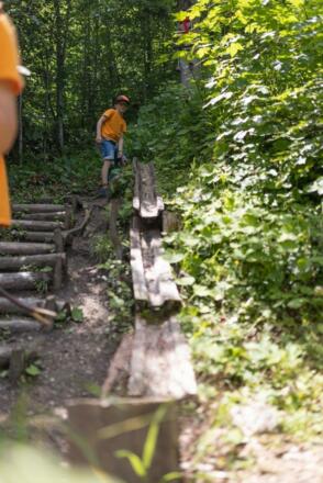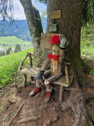 Für Kinder gibt es verschiedene Spielstationen, während Eltern Ruheplätze finden können, um die magische Atmosphäre des Waldes zu genießen. Es gibt drei verschiedene Routen, die alle ihre eigenen Herausforderungen bieten. Die blaue Route ist fast kinderwagentauglich - vorausgesetzt, du hast ein Gelände-Kinderwagen! Die rote Route führt dich über schmale Stege durch den dichten Wald und belohnt dich mit atemberaubenden Ausblicken auf die majestätische Bergwelt. Entlang des Weges begegnest du lustigen Waldgeistern und stößt auf weitere aufregende Spielstationen.
