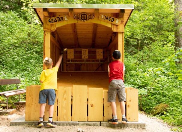 Kinder-Erlebniswelt der besonders natürlichen Art: Kinder-Waldspiele: Hilf unseren Waldgeistern beim Haus bauen und lass dich von lustigen Spielen und Stempelstationen und Waldkugelbahnen überraschen.