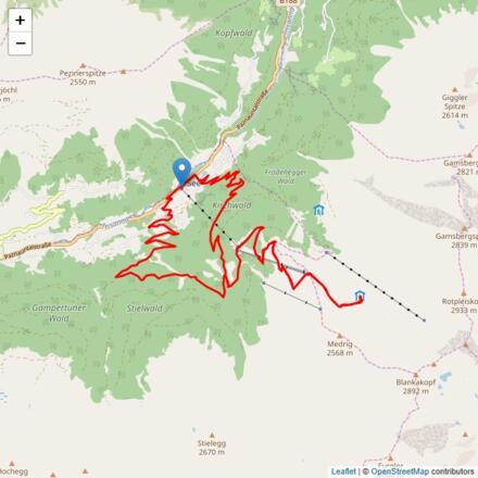 Schweißtreibender, aber aussichtsreicher Ausflug vom Talboden ins Hochgebirge. Ein kurzes Stück startet man entlang der Bundesstraße Richtung Ischgl, verlässt diese aber bald nach links und fährt – weiterhin auf Asphalt – bergan durch die Ortsteile Klaus und Maierhof. Bei den letzten Häusern beginnt die Forststraße, der man bei angenehmer Steigung in einigen Serpentinen durch die Wälder folgt. Nach etwas mehr als 8 km erreicht man die Bergstation der Medrigjochbahn bei der Medrigalm. Entlang der Skipisten führt nun ein Forstweg zum Teil etwas steiler hinauf zur Bergstation der Zeinisbahn. Es folgt ein längerer flacher Abschnitt mit kurzem Schlussanstieg zur Ascherhütte. Eingerahmt von hochalpinen Berggipfeln hat man hier ein gewaltiges Panorama vor sich, das man am Besten bei einer Stärkung auf der Sonnenterrasse genießt.