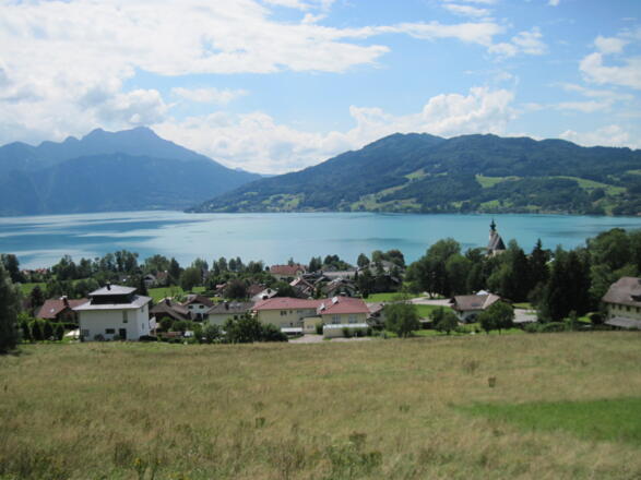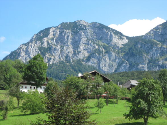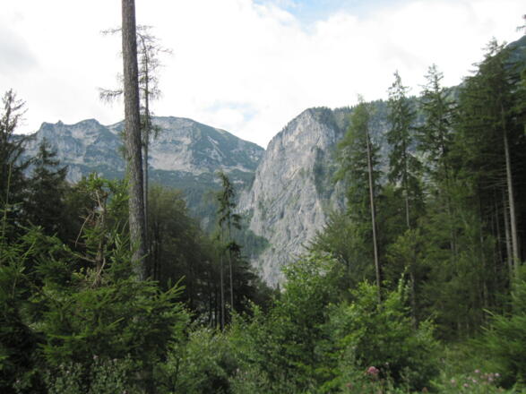 Sie folgen dieser Route nun gut 2 km durch Waldhänge und über einige Schuttmuren, bis Sie unterhalb der Adlerspitzen den Hüttenweg des Hochleckenhauses erreichen. Geradeaus auf dem Valerieweg Richtung „Forstamt, Weißenbach“ weiter. Nun folgt der schönste Abschnitt dieses Pfades, der schließlich oberhalb der Auboden-Jagdhütte (831 m) in den Weg Nr. 822 („Stieg“) einmündet. Rechts hinab zu einer quer verlaufenden Forststraße, der Sie einige Meter nach links folgen. Dann zweigen Sie rechts nach der Beschilderung „Steinbach“ ab und wandern durch Wald zu den obersten Häusern hinunter. Dort erreichen Sie eine Straße, die durch den Weiler Kaisigen nach Steinbach am Attersee (509 m), dem ÖAV-Bergsteigerdorf im Naturpark Attersee-Traunsee, führt.