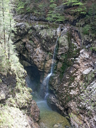 Sodann geht es bergauf durch die Rettenbachklamm, bis man vor der Blaa Alm wieder eine kurze aber steile Schiebepassage über 24 % Steigung bewältigen muß.