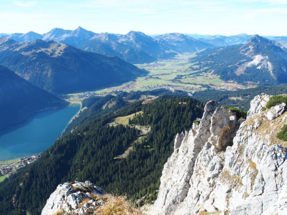Vom Hotel zur Füssner Jöchle Bahn, mit der Gondelbahn zur Bergstation. Wir wandern zuerst zum Reintaljoch, dann rechts zum Hallergernjoch teilweise steiler schmaler Bergpfad, Aufstieg zum Schartschrofengipfel, sehr schöner markanter Gipfel mit herrlicher Aussicht direkt vor dem gewaltigen Massiv von Rot Flüh und Gimpel. Abstieg zur Otto-Mayr Hütte und nach der Brotzeit Aufstieg ca. 1 Stunde zum Reintaljoch und zurück zur Gondelbahn.