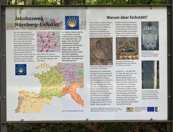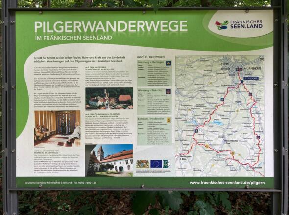 Der Jakobsweg Nürnberg-Ulm geht weiter Richtung Süd-Westen nach Schwabach, der Jakobsweg Nürnberg-Eichstätt in Richtung Süden nach Schwanstetten.
