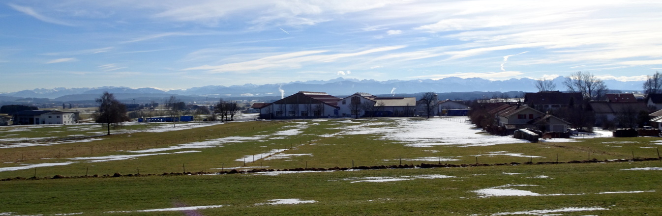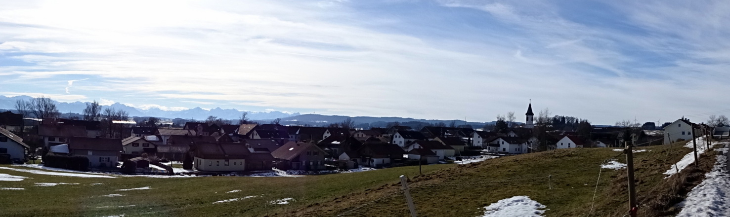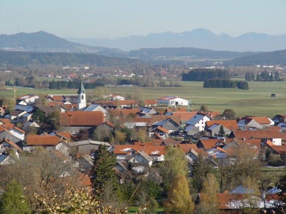 Der Schönauweg führt in einer gemütlichen Runde von Schwabsoien hoch zum Aussichtspunkt am Netzenberg. Von hier lohnender Blick über die südliche Voralpenlandschaft mit Schongau, dem Auerberg und der Alpenkulisse ganz im Süden.