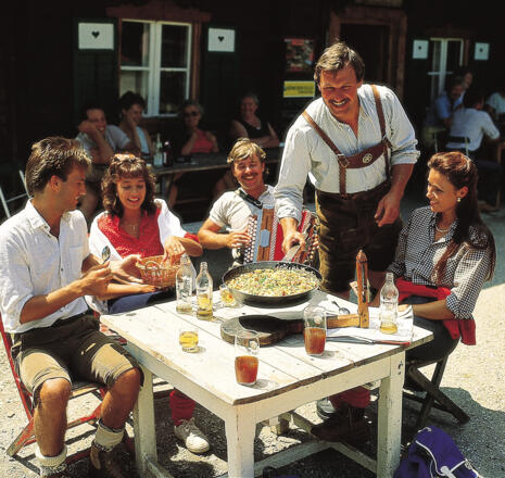 Auf der Schwarzachtalalm werden Gäste vom Urviech Hans mit Tiroler Köstlichkeiten verwöhnt. Zünftige Hüttengaude ist garantiert, wenn der Hans zum Singen anfängt.