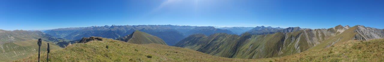 Über den höchsten Punkt den Pezid schreiten wir recht schnell. So schön der Gipfel im Winter mit der Seilbahn zu erreichen ist, so schlimm schaut es hier im Sommer aus. Deswegen zweigen wir auch bald, als wir den Talboden erreicht haben, auf einen reizvollen Steig nach links ab, der uns durch Moore und entlang von Seen, abwechslungsreich und sanft ansteigend auf die "Scheid" führt.