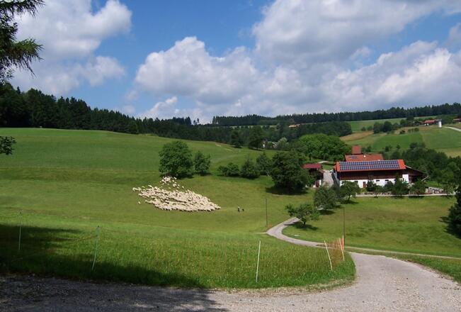 Ausgangspunkt der Simbacher Wanderwege ist das städtische Freibad im Ortsteil Obersimbach. Der Panoramaweg ist der längste der vier Rundwanderwege und führt in östlicher Richtung von Obersimbach nach Waltersdorf. Gleich zu Beginn des Weges bietet sich ein herrlicher Ausblick Richtung Inntal. In Waltersdorf, das am Fuße des Schellenberges liegt, zweigt der Weg nach links in die Waldstraße und führt von dort über einen kleinen Steg zum Wald. In nördlicher Richtung geht´s dem Schellenberg entgegen, nach einigen hundert Metern schwenkt der Weg scharf nach rechts ab, führt dann einen kurzen aber steilen Hang hinauf, bevor es dann etwas gemächlicher bergan weitergeht. Vorbei an Lichtungen und durch Hochwald schlängelt sich der Waldweg dem Schellenberg hinauf, bis dieser in eine breite Forststraße mündet, in die man nach rechts einbiegt. Wanderweg 1 begleitet ab hier auf dem weiteren Weg zur Waldkapelle. Doch vorher bietet sich ein kurzer Abstecher zum Aussichtsturm „Inntalblick“ an, der nur einige Schritte von der Route entfernt ist. Entlang der Forststraße geht´s dann gemächlich weiter zur Waldkapelle, wo eine Sitzgruppe im Schatten des Hochwaldes zum Verweilen einlädt. Gleich neben der Kapelle der sog. Schellenbergbrunnen, dieser ca. 500 Jahre alte Brunnen ist ein Relikt der ersten Besiedlung auf den Schellenberghöhen und bis heute erhalten. Einige hundert Meter weiter verlässt man das Waldgebiet und kann nun einen herrlichen Fernblick ins Inntal genießen. Bei Dattenbach zweigt der Weg nach rechts ab in eine Nebenstraße, die zu den idyllisch am Hang gelegenen Weilern Kobelstetter und Denk führt. Auf dem weiteren Weg durchquert man nochmals einen Ausläufer des Schellenbergwaldes, bevor man Winklham erreicht. Am Ortsende des schönen Dörfleins schwenkt der Weg nach rechts ab und führt nun einer Teerstraße folgend nach Waltersdorf. Dort verlässt man die Teerstraße, zweigt nach rechts ab, folgt der Beschilderung dem Weg durch die Siedlung und biegt an der Passauer Straße recht ab. Gleich anschließend an der nächsten Gabelung zweigt der Weg wieder nach rechts ab, in die Erlacher Straße, der man folgt durch Erlach und Thalham zurück nach Obersimbach, zum Ausgangspunkt.