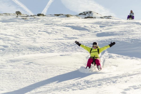 Rodelspaß pur mit dem SNOOC-Skischlitten-Schneeschuh, erwartet Sie entlang der Alten Jochstraße in Oberjoch bis zum Fuß der Jochpassstraße in Bad Hindelang.